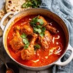 This African coconut chicken curry is a rich, flavorful dish that combines tender chicken thighs and drumsticks with a fragrant blend of spices, creamy coconut milk, and tangy tomatoes. The chicken is first browned to develop a crispy skin and deep flavor, then simmered gently in the spiced coconut curry sauce until perfectly cooked. Garnished with fresh coriander and served with fragrant basmati rice, this comforting curry offers a delicious taste of African-inspired cuisine that’s both hearty and vibrant.
