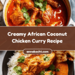 This African coconut chicken curry is a rich and aromatic dish that combines tender chicken with creamy coconut milk and warm spices. Perfect served over fluffy basmati rice, it offers a delicious taste of African-inspired comfort food that’s easy to make at home.