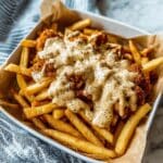 Store leftover fries and toppings separately in airtight containers in the refrigerator for up to 2 days. Reheat fries in a hot oven or air fryer to restore crispiness. The special sauce and caramelized onions can be enjoyed cold or warmed gently before serving.