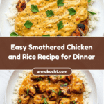 This Best Smothered Chicken and Rice recipe features tender seared chicken breasts baked in a savory mushroom and herb sauce, served over fluffy cooked rice. The creamy, flavorful sauce combined with perfectly cooked chicken breasts makes for a comforting and satisfying meal that’s easy to prepare and perfect for weeknight dinners.