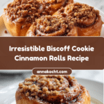 These Biscoff Cookie Cinnamon Rolls combine the classic comfort of cinnamon rolls with the rich, spiced flavor of Biscoff cookie butter. Soft, fluffy rolls are swirled with a cinnamon and brown sugar filling, topped with melted Biscoff cookie butter and crunchy crushed Biscoff cookies, creating an irresistible treat perfect for breakfast or dessert.