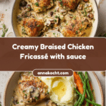 Braised Chicken Fricassé offers a comforting and flavorful dish featuring tender chicken thighs cooked in a rich, creamy sauce with mushrooms, bacon, and shallots. It’s perfect for a cozy dinner served alongside mashed potatoes and crisp veggies.