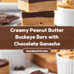 These Buckeye Bars are a rich and decadent treat featuring a creamy peanut butter layer topped with a smooth chocolate ganache. Perfectly sweet and satisfying, these no-bake bars combine classic flavors inspired by the beloved buckeye candy in an easy-to-make bar form.