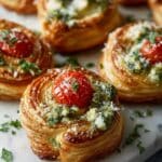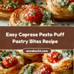 These Caprese Pesto Puff Pastry Bites are delightful, bite-sized appetizers combining flaky, golden puff pastry with fresh basil pesto, juicy cherry tomatoes, creamy mozzarella, and a drizzle of sweet-tangy balsamic glaze. Perfect for parties or a light snack, they offer a fresh, vibrant twist on the classic Caprese flavors in an easy-to-make, elegant package.