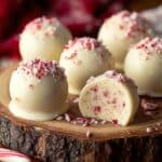 Keywords: peppermint cream cheese truffles, white chocolate truffles, holiday truffles, peppermint candy treats, no bake dessert