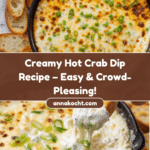 This Creamy Hot Crab Dip is a savory, cheesy appetizer perfect for gatherings and parties. Made with cream cheese, fresh crabmeat, green onions, and seasoned with garlic and salt, it’s baked until bubbly and topped with melted cheddar cheese for a golden, flavorful crust. Serve it warm with crackers, chips, or crostini for an irresistible starter.