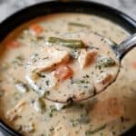 5. Add Chicken: Fold in the shredded chicken and continue to heat the soup until it is bubbly and the chicken is thoroughly warmed, about 5 minutes.