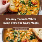 Keywords: Creamy Tomato White Bean Stew, vegan stew, tomato bean soup, plant-based stew, easy vegan recipes, quick stovetop stew