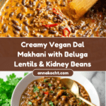 Keywords: Dal Makhani, vegan dal, Indian lentil curry, beluga lentils recipe, kidney beans curry, coconut milk dal, plant-based Indian food