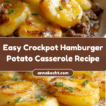 This Crockpot Hamburger Potato Casserole is a comforting, hearty dish perfect for easy weeknight dinners. Layers of thinly sliced potatoes, browned ground beef with onions, creamy mushroom sauce, and melted cheddar cheese are slow-cooked together to create a rich and savory casserole. It’s a hands-off recipe that delivers tender potatoes and a cheesy finish, garnished with fresh herbs for added flavor.