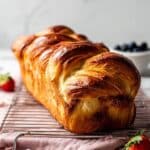 Keywords: croissant bread, laminated dough, homemade bread loaf, croissant loaf, flaky bread, breakfast bread, yeast bread, buttery bread