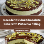 Dubai Chocolate Cake is a rich, moist chocolate delight layered with crunchy pistachio filling and creamy chocolate glaze. This decadent dessert perfectly balances textures and flavors, making it a special treat for any occasion.
