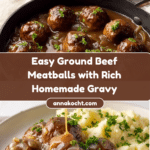 This Easy Ground Beef Meatballs and Gravy recipe features perfectly tender and flavorful meatballs simmered in a rich, savory homemade gravy. The meatballs are browned to golden perfection before being cooked through in a deeply seasoned gravy made with caramelized onions, beef and chicken broth, and a blend of spices. It’s a comforting, hearty dish ideal for family meals and pairs wonderfully with mashed potatoes or buttered noodles.
