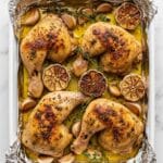 This easy oven-roasted French garlic chicken is a flavorful, comforting dish that comes together quickly and requires minimal effort. Juicy chicken pieces are roasted with whole garlic cloves, shallots, and fresh herbs for a beautifully aromatic meal perfect for any night of the week.