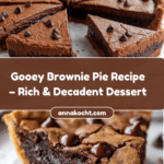 This Gooey Brownie Pie recipe combines the rich, fudgy texture of a classic brownie with the convenient pie form. Featuring a melted chocolate base mixed with eggs, sugar, and flour, this decadent dessert is baked to perfection with a soft, gooey center and chocolate chips folded throughout for added bursts of flavor.