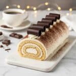 - Assemble and Serve the Cake Roll: Roll the cake tightly again starting from the same short end. Use the remaining filling to frost the outside surface of the cake roll. Dust the finished cake liberally with cocoa powder. For a polished presentation, trim the ends just before serving. Enjoy your elegant and flavorful Tiramisu Yule Log Cake!