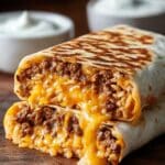 This Grilled Cheese Burrito combines the savory flavors of seasoned ground beef, creamy cheeses, and bold chipotle sauce wrapped in a warm flour tortilla. Crispy grilled cheese on the outside adds an irresistible crunch to a hearty and satisfying meal perfect for lunch or dinner.