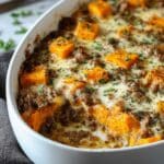 This Ground Turkey Sweet Potato Bake is a comforting and hearty dish perfect for weeknight dinners. Combining tender sweet potatoes, savory ground turkey, and melted cheddar cheese, it’s a delicious one-pan meal that’s easy to prepare and sure to please the whole family.