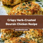 Keywords: Boursin chicken, herb crusted chicken, baked chicken breast, stuffed chicken recipe, creamy cheese chicken, panko breadcrumb chicken
