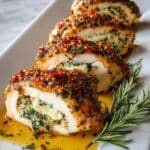 These Herbed Ricotta Stuffed Chicken Rolls are a delicious and elegant dinner option featuring tender chicken breasts filled with a flavorful mixture of ricotta, Parmesan, and fresh herbs. They’re seared to perfection for a golden crust, then baked in marinara sauce to keep them juicy and infused with Italian flavors.