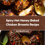 This Hot Honey Baked Chicken Breasts recipe delivers tender, juicy chicken breasts coated in a spicy-sweet hot honey sauce. The chicken is first seasoned and scored for deeper flavor infusion, then baked to golden perfection. Pared with a buttery, garlicky hot honey glaze featuring cayenne, chili powder, and smoked paprika, this dish balances heat and sweetness beautifully. Ideal for an easy yet flavorful weeknight dinner.