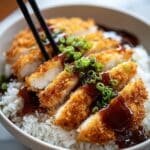 Japanese Katsu Bowls with Tonkatsu Sauce are a delicious and satisfying meal featuring crispy fried chicken served over rice and drizzled with a savory-sweet sauce. This recipe is perfect for a comforting dinner that feels both special and easy to prepare at home.