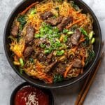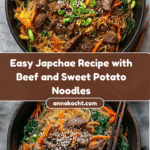 Keywords: Japchae, Korean glass noodles, sweet potato noodles, stir-fry, Korean beef noodles, vegetable noodles, Korean cuisine, gluten-free Korean dish