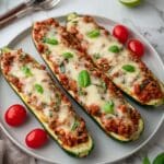 Keto Chicken Parmesan Zucchini Boats combine tender ground chicken, sugar-free marinara, and a cheesy blend of mozzarella and Parmesan nestled inside tender zucchini halves. This low-carb, flavorful dish is baked to bubbly perfection, offering a comforting and healthy take on classic chicken Parmesan, perfect for keto and low-carb diets.