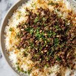 Lebanese Hashweh is a fragrant rice pilaf topped with spiced ground meat and toasted pine nuts. This comforting dish blends warm spices with tender basmati rice and crunchy vermicelli, making it a perfect centerpiece for any meal. It’s both satisfying and full of Middle Eastern flavors.