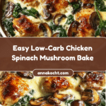 This Delicious Low-Carb Chicken Spinach Mushroom Bake is a comforting and easy dinner option perfect for busy weeknights. With tender chicken, earthy mushrooms, and creamy sauce, it’s a flavorful meal that feels indulgent without the carbs.