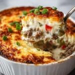 This Low Carb Philly Cheesesteak Casserole is a delicious and hearty dish that combines seasoned ground beef, sautéed vegetables, and melted cheeses baked to perfection. Perfect for those seeking a flavorful, low-carb meal inspired by the classic Philly cheesesteak sandwich, it offers gooey provolone and mozzarella cheeses layered over a creamy, savory beef and pepper mixture.