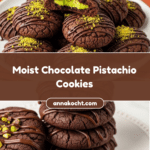 Keywords: Chocolate pistachio cookies, moist chocolate cookies, nut-filled cookies, soft chocolate cookies, pistachio dessert, homemade cookies, chocolate treat