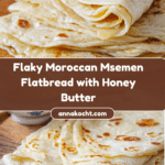 Keywords: Msemen, Moroccan flatbread, Moroccan bread, semolina bread, layered flatbread, honey butter bread, North African bread, easy flatbread recipe