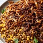 - Combine and Serve: Stir half of the fried onions gently into the lentil and rice mixture using a fork. Transfer the mixture into a shallow serving bowl and top with the remaining crispy fried onions for garnish.