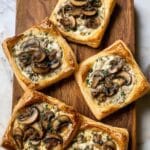 Keywords: mushroom tart, goat cheese tart, puff pastry appetizer, vegetarian appetizer, herbed mushroom tart