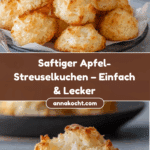Diese Kokosmakronen nach Omas Rezept sind wunderbar saftig und weich mit einer zarten Kokosnote. Einfach zuzubereiten und perfekt als süßer Genuss zu Kaffee oder Tee.