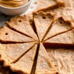 - Cool and Slice: Remove the pan from the oven and let the cookies cool for 10 to 15 minutes inside the pan. Once slightly cooled, gently lift the parchment paper to remove the shortbread circle from the pan. Using a sharp knife, cut the shortbread into 8, 12, or 16 even pieces while it is still warm. Allow pieces to cool completely before serving or enjoy warm.