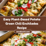 These plant-based potato green chili enchiladas are a comforting and flavorful dish perfect for any night of the week. Packed with tender potatoes, black beans, and a zesty green chili sauce, they’re both hearty and satisfying. Plus, they’re easy to prepare and ideal for meat-free meals.