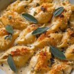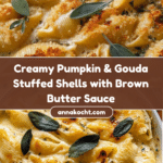 This Pumpkin & Gouda Stuffed Shells recipe combines creamy pumpkin and smoky gouda for a deliciously savory filling. Topped with a rich brown butter and sage Alfredo sauce, it’s a comforting and elegant dish perfect for fall or any cozy dinner.