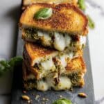 This sourdough pesto grilled cheese is a flavorful twist on a classic favorite. Combining creamy mozzarella, savory bacon, tangy sun-dried tomatoes, and fragrant pesto on crisp sourdough, it’s a gooey, satisfying sandwich perfect for any time of day.