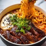 PrintSpicy Korean Ramen with Grilled Beef & Creamy Sauce Recipe