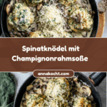 Keywords: Spinatknödel, Kalorienarm, Gesund, Hauptgericht, Vegetarisch, Champignonsoße, Knödelbrot, Spinat, Magerquark