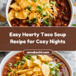 Taco soup is a hearty, flavorful dish that combines the zest of Mexican spices with the comfort of a warm bowl of soup. This recipe is easy to make and perfect for busy weeknights or casual gatherings. Top it with your favorite garnishes for a delicious meal everyone will enjoy.