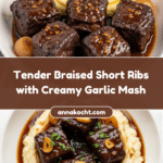 Keywords: braised short ribs, garlic mashed potatoes, beef short ribs recipe, tender short ribs, comfort food, slow cooked beef, red wine braised meat, creamy mashed potatoes