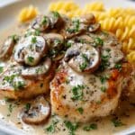 This Delicious Texas Roadhouse Smothered Chicken recipe features tender chicken breasts smothered in a savory mushroom and onion sauce, topped with melted Monterey Jack cheese. Searing the chicken locks in juices while the creamy sauce creates a rich, comforting dish reminiscent of classic Texas Roadhouse flavors, perfect for a cozy family dinner.