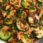 This Thai Cucumber Salad with Chicken is a refreshing and flavorful dish combining crisp cucumbers, shredded chicken, and a creamy, tangy peanut dressing. Enhanced with sesame oil, chili crisp, and lime juice, it offers a perfect balance of savory, sweet, and spicy notes for a light, satisfying meal or side dish.