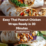 These Thai Peanut Chicken Wraps combine tender marinated grilled chicken with a creamy, tangy peanut sauce, fresh crunchy vegetables, and whole wheat tortillas for a flavorful and satisfying meal. Perfect for a quick lunch or light dinner, these wraps offer a delightful balance of sweet, savory, and spicy notes with a nutritious twist.
