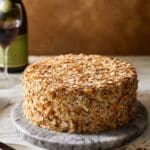 Keywords: almond cake, toasted almonds, almond buttercream, layered cake, dessert, baking, cream cake