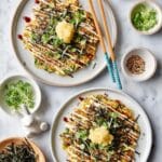 PrintVegan Okonomiyaki with Cabbage, Scallions, and Toppings Recipe