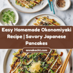Keywords: Okonomiyaki, Japanese pancake, savory pancake, cabbage pancake, vegan okonomiyaki, easy Japanese recipe